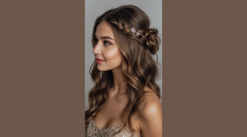 Planning your Hoco look can be a whole journey, right? Between finding the perfect dress and figuring out if your shoes will actually let you dance, hair often feels like the final boss. But check out this awesome style! Those delicate braids sweeping back into a cute bun, topped with a dazzling hair clip, are practically screaming “Homecoming royalty.” It’s like your hair decided to go on a fancy vacation but still kept it totally fun and approachable. You might just make everyone else wonder if their hair stylist has a secret VIP list.