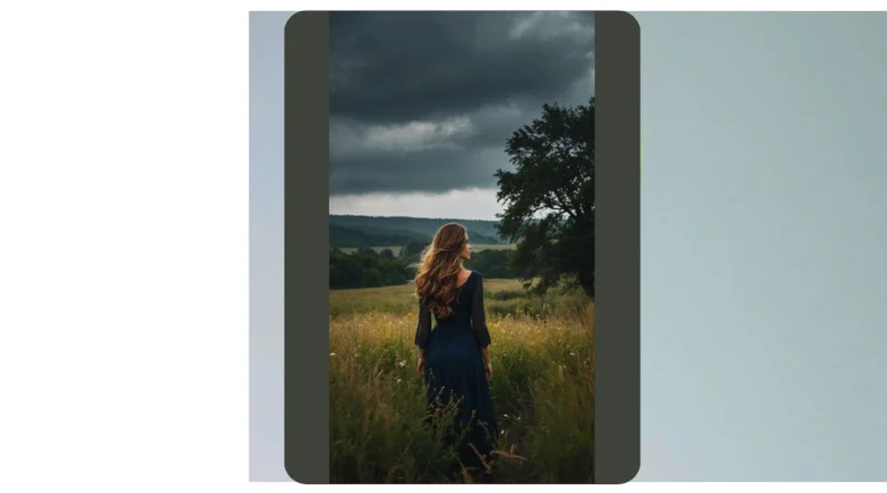 This woman really knows how to make a dramatic entrance, even if it’s just into a field. With those epic storm clouds rolling in, you’d think her hair would be a total frizz disaster, but nope! It’s flowing perfectly, probably powered by sheer willpower and a secret stash of hairspray. She’s rocking that fancy blue dress amidst all the tall grass and wildflowers, looking like she accidentally wandered off a movie set but decided to own it. Clearly, she’s mastered the art of looking fabulous no matter what Mother Nature throws her way, making her the ultimate “nature woman” role model.