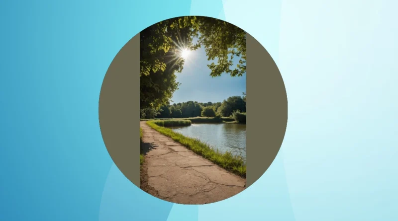 That inviting path looks like it’s got stories to tell, especially with all those cool cracks that probably hold memories of a thousand sunny strolls. Right beside it, the water stretches out, calm and shimmering, practically begging you to skip a stone or just sit and watch the tiny ripples. It’s the perfect spot to ditch your headphones, enjoy the quiet, and maybe even concoct a plan for world domination… or just what to have for dinner. Either way, this ‘sunny place’ has got you covered for some serious chill time.