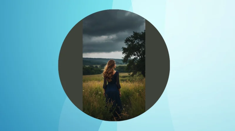 This woman really knows how to make a dramatic entrance, even if it’s just into a field. With those epic storm clouds rolling in, you’d think her hair would be a total frizz disaster, but nope! It’s flowing perfectly, probably powered by sheer willpower and a secret stash of hairspray. She’s rocking that fancy blue dress amidst all the tall grass and wildflowers, looking like she accidentally wandered off a movie set but decided to own it. Clearly, she’s mastered the art of looking fabulous no matter what Mother Nature throws her way, making her the ultimate “nature woman” role model.