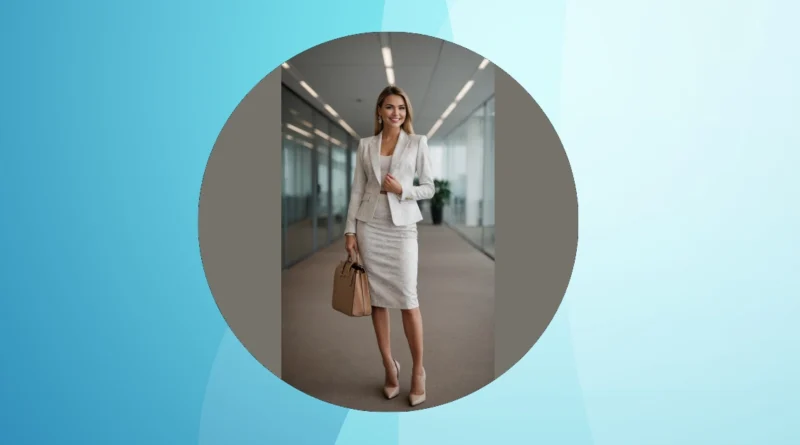 Look at this awesome woman rocking her business casual! Her light, patterned suit isn’t just for looking super professional; it’s also got a fun, modern twist with that subtly cropped top underneath. It’s like her outfit is saying, “I’m ready to tackle that big presentation, but also, let’s be real, I’m planning my lunch break.” This style is all about finding that perfect balance where you look put-together enough to impress, but also cool and comfortable enough to actually enjoy your day, without feeling like you’re stuffed into a cardboard box.