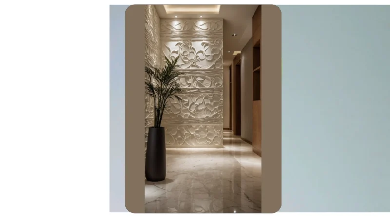 And check out that super chill plant hanging out by the wall, probably admiring its own reflection in the shiny floor and thinking, ‘Yeah, I belong here, next to this masterpiece.’ This whole setup just screams ‘fancy hangout spot’ or maybe even the entrance to a super-secret spy headquarters where everything is incredibly stylish. Forget posters; these decorative wall panels turn a simple hallway into an art gallery you actually want to walk through. It’s proof that your home doesn’t have to be just bricks and drywall; it can be an epic statement that makes everyone go, ‘Whoa, where did they get that?!’