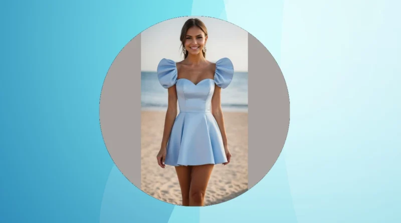 Talk about a showstopper hoco dress! This light blue beauty, complete with those amazing puffed sleeves, looks ready to make waves – whether you’re on the beach or the dance floor. It’s got that perfect blend of sweet and sassy, making you feel like you could conquer the world, or at least ace your history test *and* look fabulous doing it. Those sleeves are so big, they might just be able to carry all your enthusiasm for homecoming night!