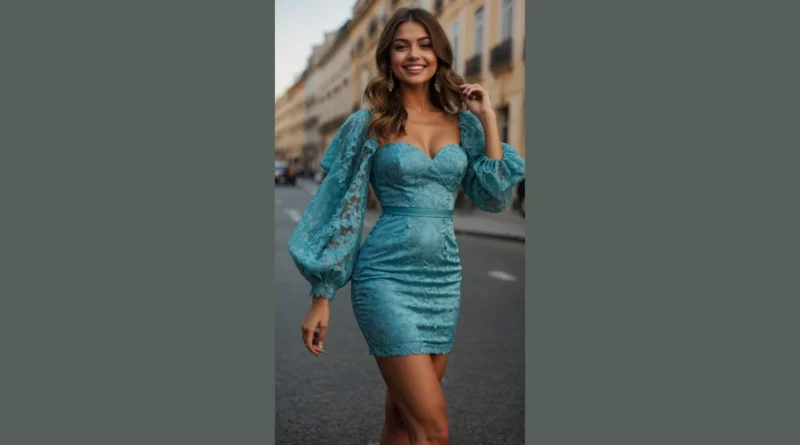 Beyond the fabulous sleeves, this entire frock design is a masterclass in looking chic and fun at the same time. The fitted body with its subtle floral embroidery gives it a super stylish edge, while the sweet scalloped lace hem keeps it playfully modern. It’s the kind of outfit that makes you want to spin around and maybe even do a little happy dance on the sidewalk, just like our smiling model here. Whether you’re heading to a party or just want to feel like the main character of your own story, this dress proves that a good frock can totally boost your mood and your look!